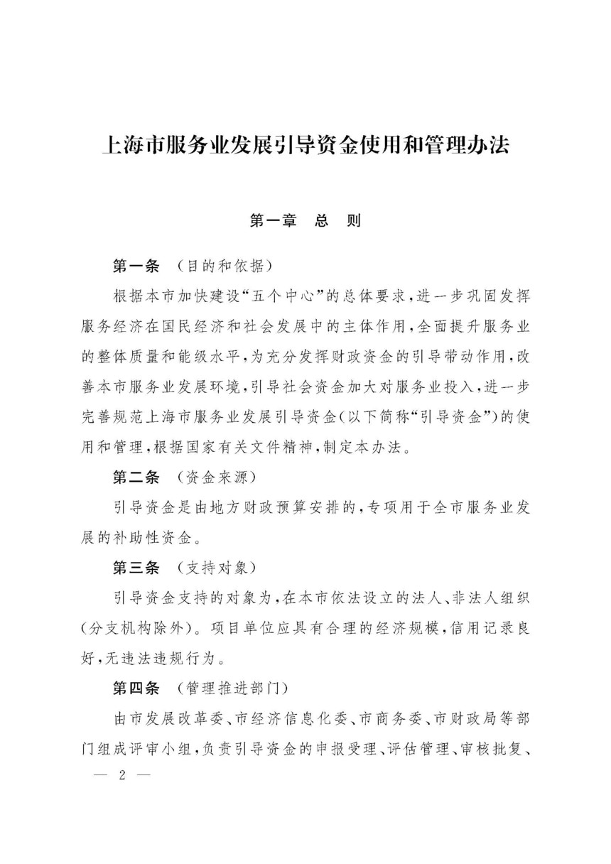 上海市服務(wù)業(yè)發(fā)展引導(dǎo)資金
